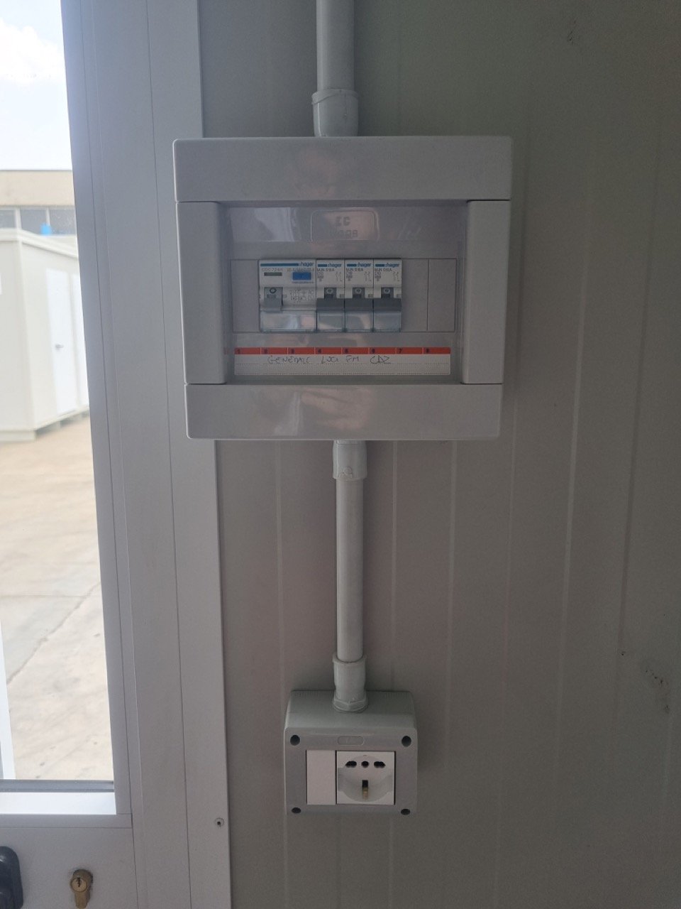 Sistema elétrico em conformidade com as normas CEE 220V, com tubo de PVC branco aparente, incluindo: