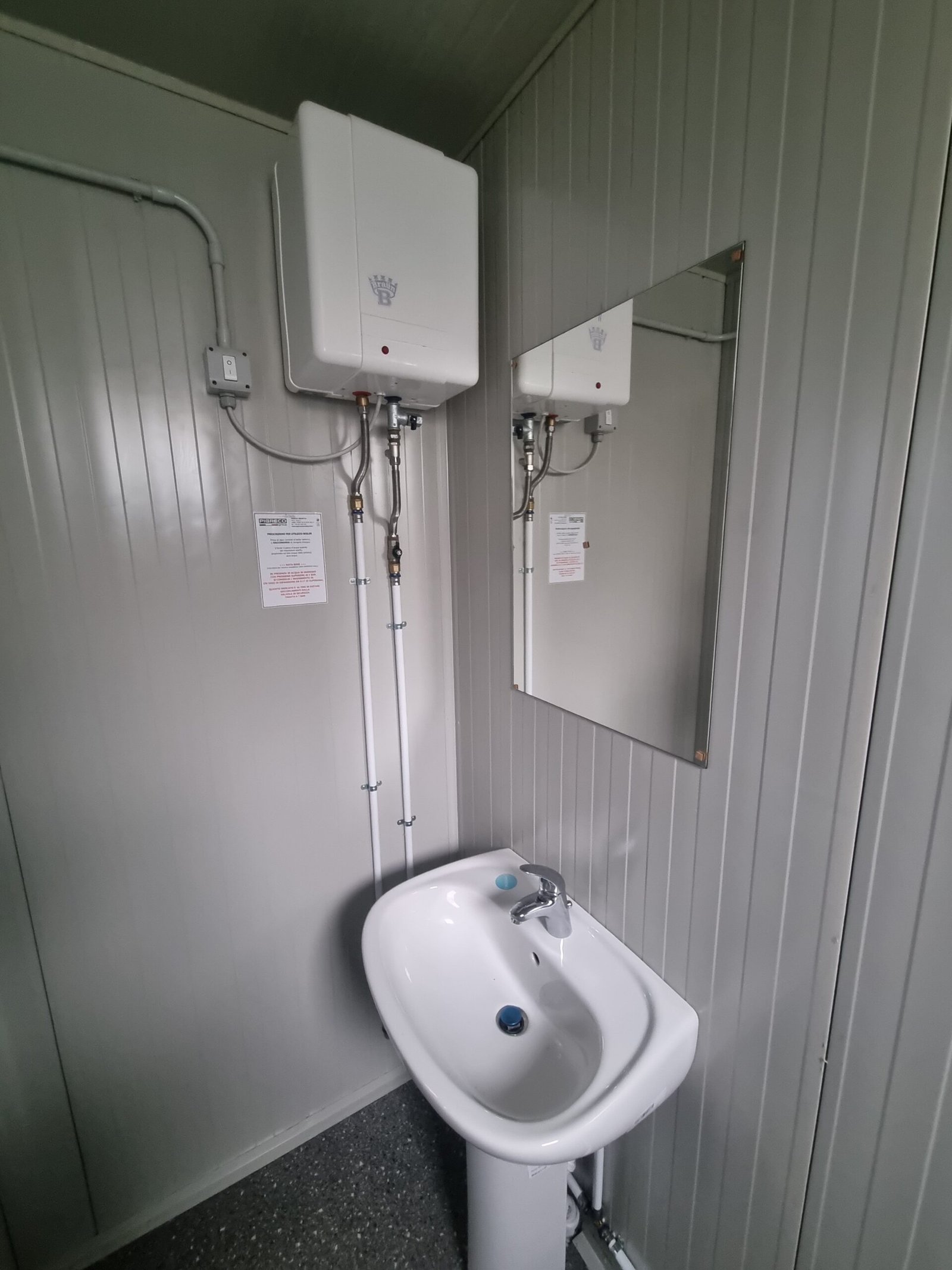 Sistema elétrico em conformidade com as normas CEE 220V, com tubo de PVC branco exposto, incluindo: