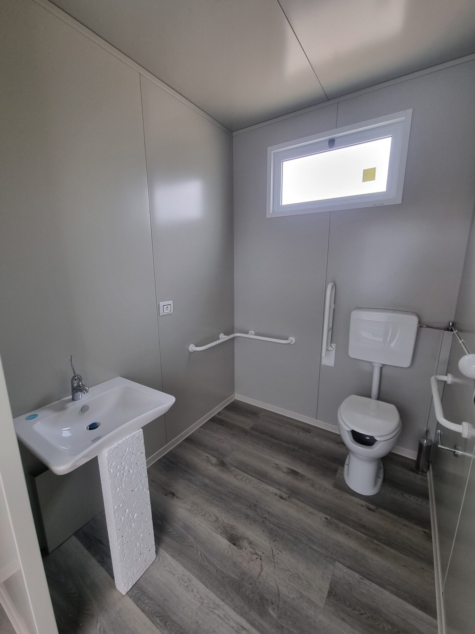 N.º 1 Casa de banho adaptada completa com (sanita + lavatório em cerâmica) e respectivos puxadores.