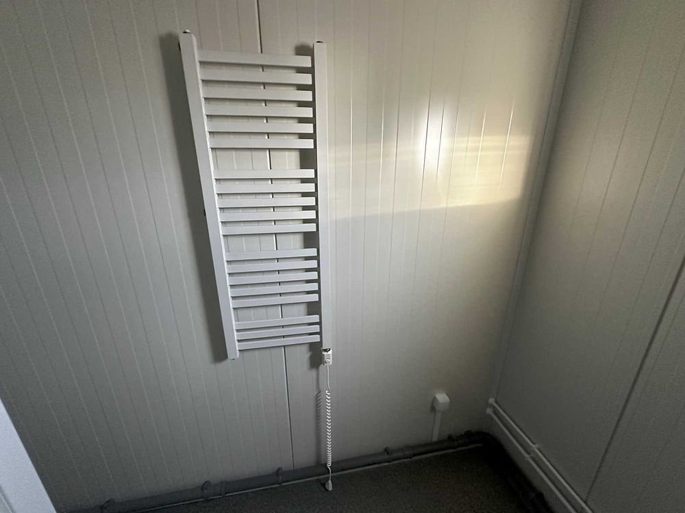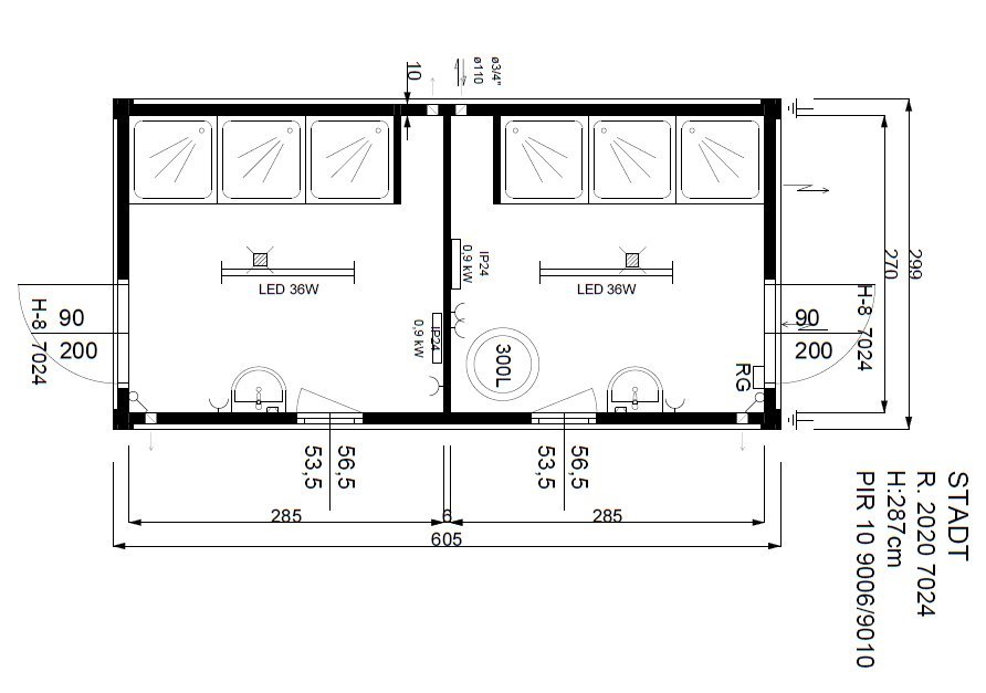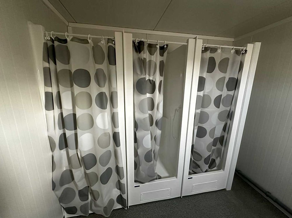 Contentor sanitário 3×6 – 6 duches, 2 lavatórios, esquentador de 300 litros