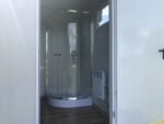 Esta cabine sanitária de 3×2 metros foi concebida para integrar as funcionalidades essenciais de WC e Duche, juntamente com um tanque para águas residuais. O interior inclui uma sanita, uma área de duche e um lavatório, proporcionando as comodidades básicas de higiene num espaço compacto. O design robusto em painel sandwich com isolamento e as duas janelas garantem um ambiente funcional e com alguma luz natural. A porta de entrada em chapa de aço oferece segurança.