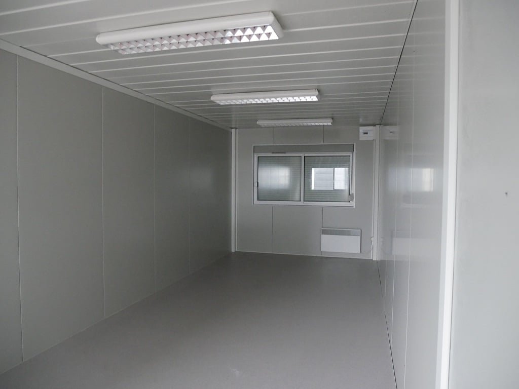– ​​Duas estruturas em aço galvanizado com pintura branca de 8,24 m x 3 m x 3 m, com um pé-direito de 2,51 m