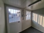 N.º 1 porta semi-envidraçada, equipada com barras anti-intrusão, com puxador e fechadura de série, com dimensões exteriores 100 x 210h cm.