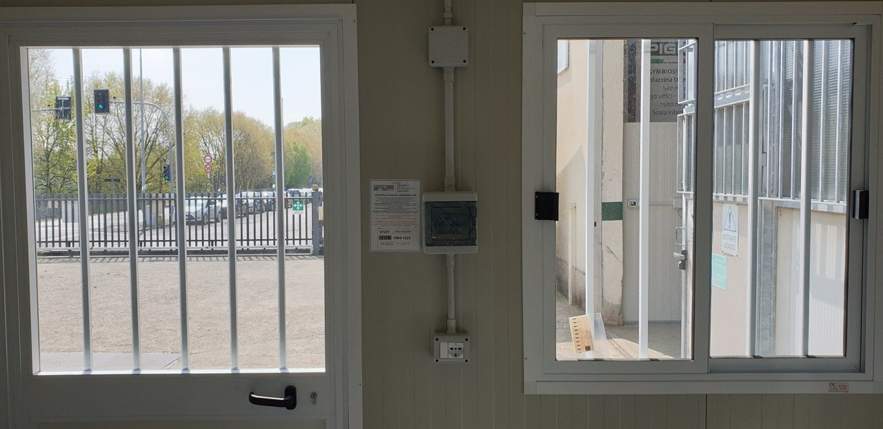N.º 1 janela de correr, equipada com barras anti-intrusão, dimensões exteriores 100 x 100h cm.