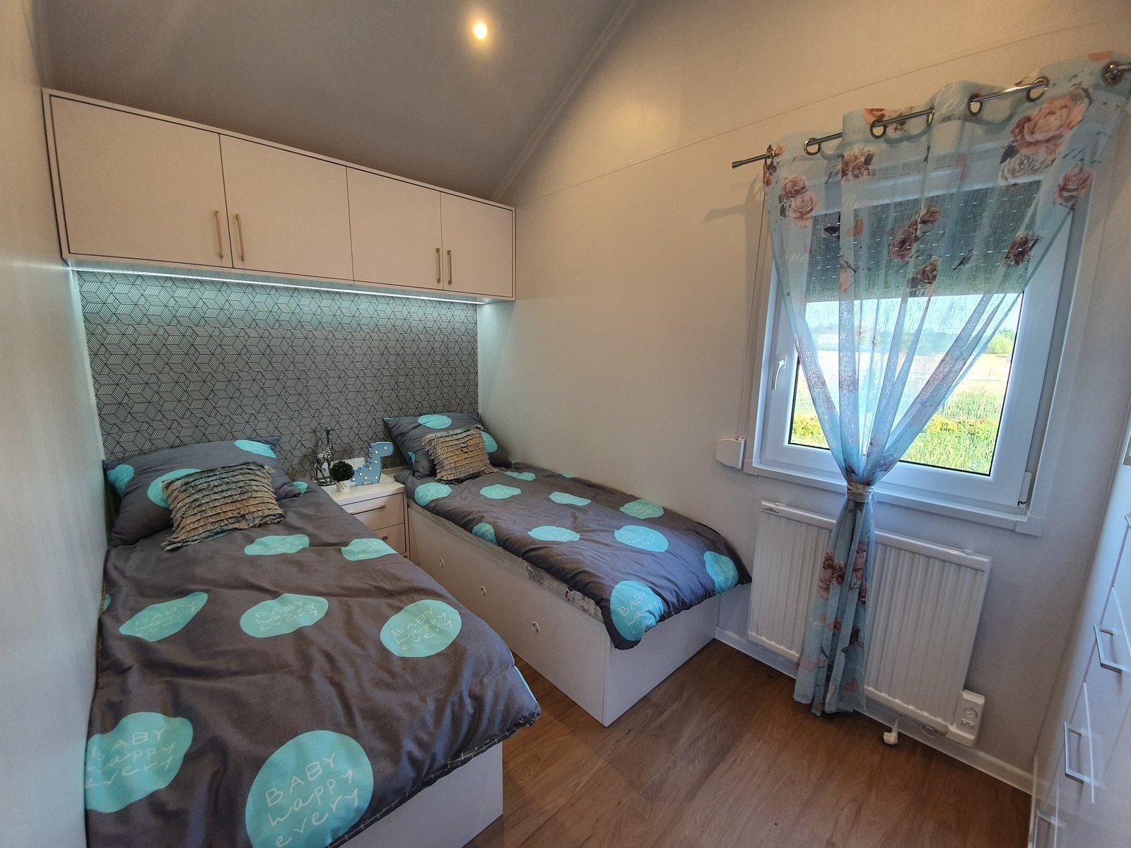 2 camas individuais com colchões e roupa de cama