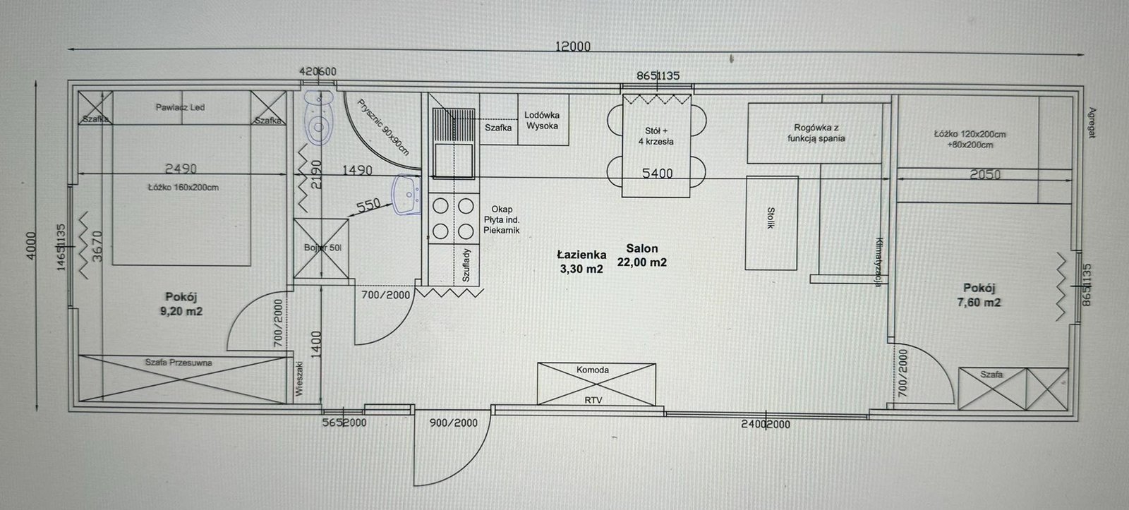 Dimensões: 12,0 x 4,0 m