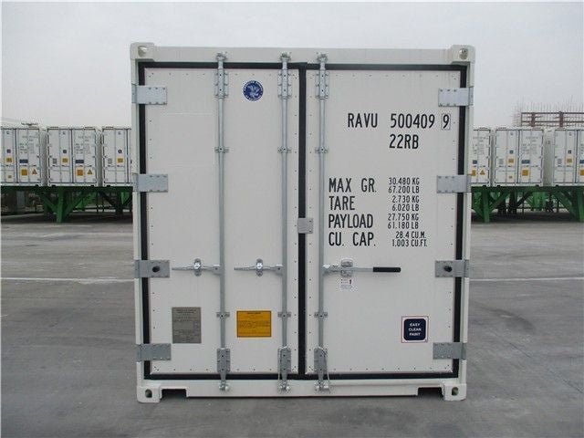 Contentor/frigorífico refrigerado para transporte marítimo de 20 pés novo, utilizado para aplicações relacionadas com a manutenção da temperatura dos produtos a temperatura constante.